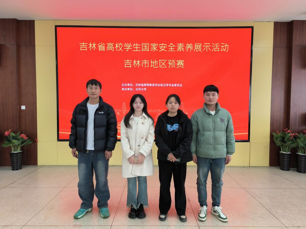3月29日,2024年吉林省高校学生国家安全素养展示活动吉林市地区预赛在北华大学学术报告厅举办。来自吉林市9所高校的36名选手参加此次比赛,我校4名选手以总成绩第1名夺得市赛一等奖,并代表吉林市地区参加省赛决赛。
