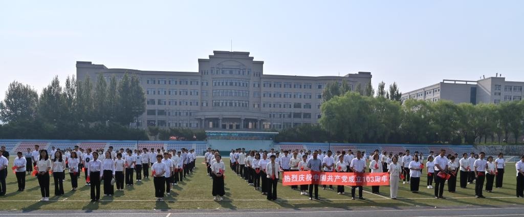 为庆祝中国共产党成立103周年,深刻回顾党的光辉历程,激发我校师生爱国爱党热情,7月1日早晨,学校举行“忆百年峥嵘,颂盛世华章”主题升旗仪式。外国语学院全体党员师生、机关党委第五党支部全体成员参加本次升旗仪式。