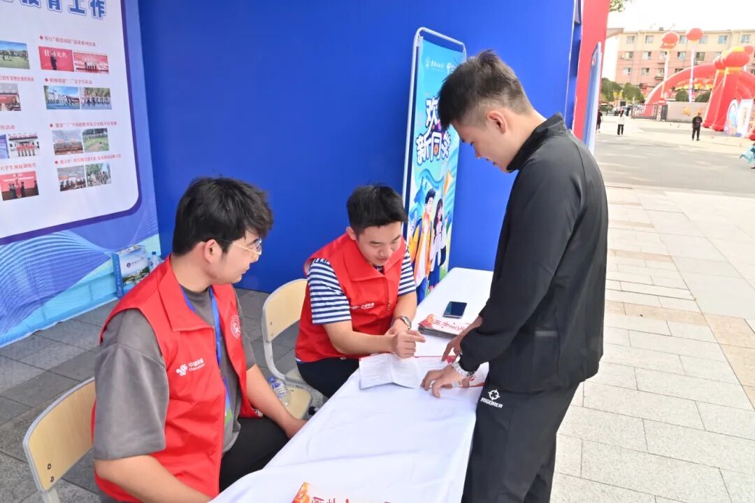 在征兵咨询专区,学工部工作人员耐心为有参军意向的新生讲解征兵政策,细致解答每一个疑问,助力同学们逐梦军营,将青春热血融入家国情怀。
