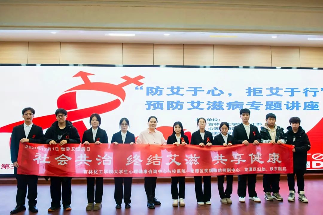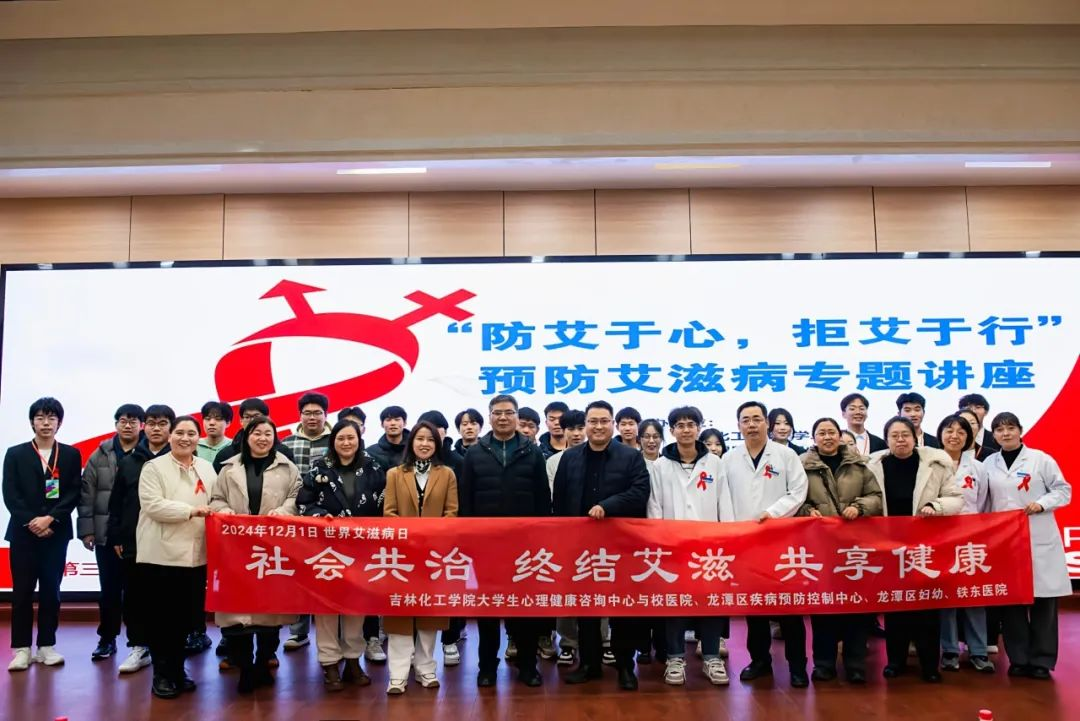 为提高大学生对艾滋病的认识,普及预防知识,共筑防艾防线,12月3日,我校学工部大学生心理健康咨询中心与后勤保障部校医院携手,邀请吉林市化工医院泌尿科主任鞠长亮、龙潭区妇幼保健院院长尹双双、吉林市龙潭区铁东医院院长郭宋、龙潭区疾病预防控制中心防艾科科长孙娇、医生云云与郑宇鑫等各位专家,在图书馆报告厅举办了两场大学生预防艾滋病主题讲座。