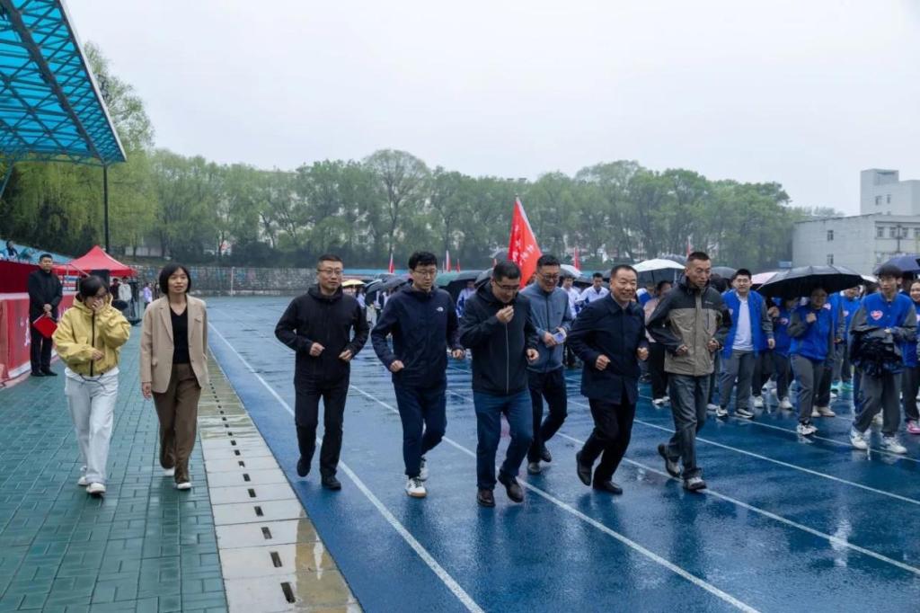 开幕式后,最令人期待的健心跑环节即将开始。领导们纷纷走下舞台,毫不犹豫地站在雨中,以身作则,率先起跑。他们坚定的步伐,展现出勇往直前的精神,也激励着在场的每一个人。在领导们的带动下,大家热情高涨,迎着风雨,迈着矫健的步伐,向着目标奋力奔跑,用汗水诠释青春的活力与激情,展现着青春最美的样子。