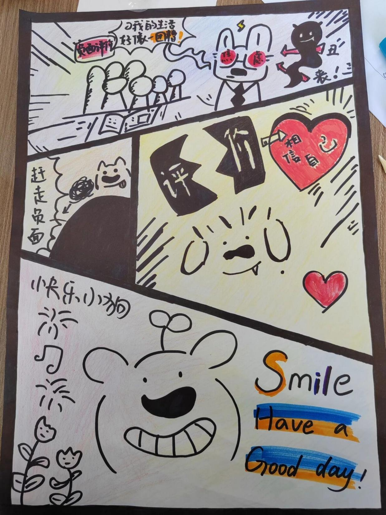 两幅风格迥异的海报各具特色:一幅以生动活泼的漫画形式,巧妙勾勒出寝室六人的鲜明个性,或幽默风趣、或沉稳内敛,人物形象跃然纸上,尽显室友间的独特魅力与青春活力;另一幅则聚焦情绪管理领域,以直观易懂的方式呈现实用的情绪解决方法。
