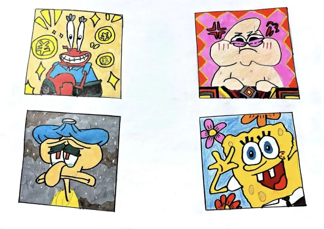 作品简介:在沙滩,章鱼哥又因生活琐事愁眉苦脸,雨滴仿佛是他的坏心情。蟹老板则沉浸在金币带来的喜悦中,满眼都是财富的光芒。派大星因为没有吃到自己喜欢的东西而生气。而海绵宝宝永远活力满满,对着花儿比耶,用快乐感染着身边的伙伴。