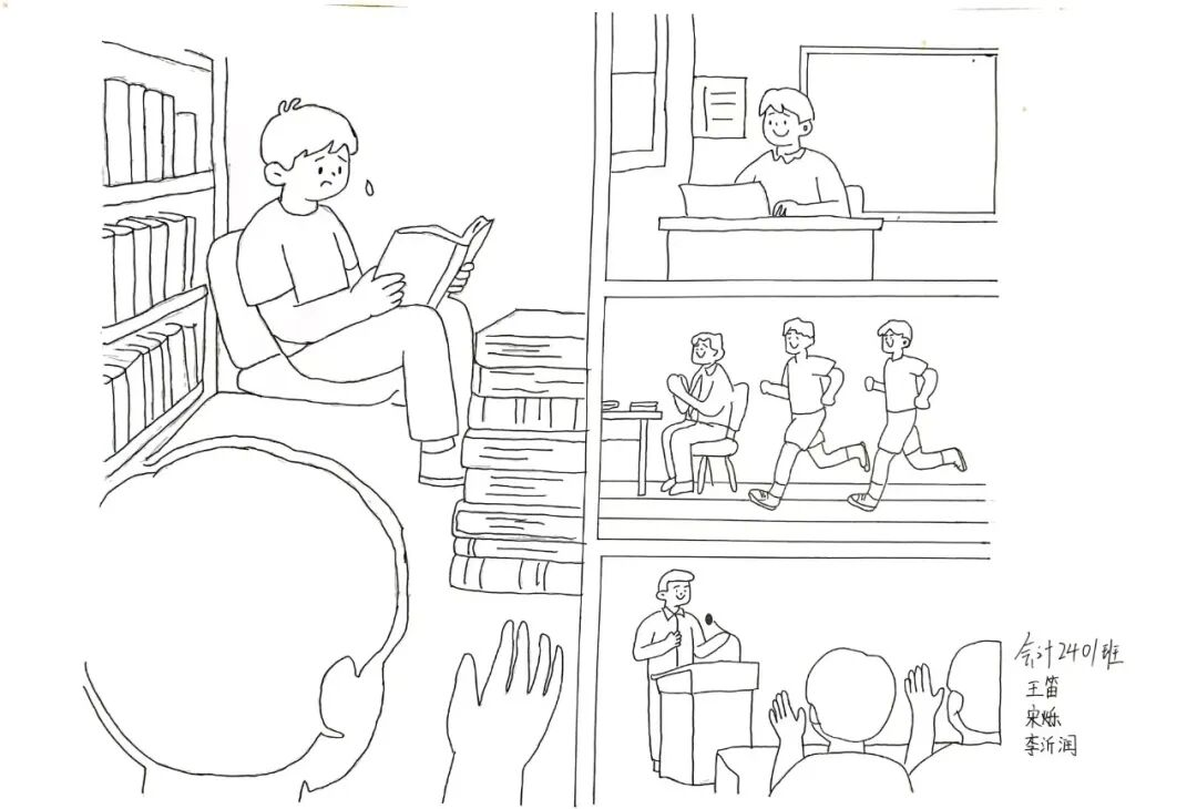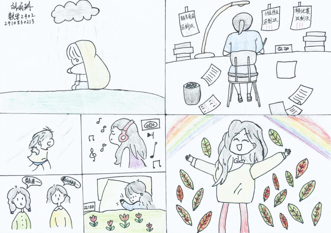 作品简介:围绕课设难题,从选题公布时被晦涩术语“轰炸”的挫败,到思路陷入僵局的焦虑,再到查阅资料、反复尝试的执着,最后是攻克难题的欣喜,我用《课设难题的破局之路》这四格漫画,生动记录了我们团队并肩突围、收获成长的全过程 。