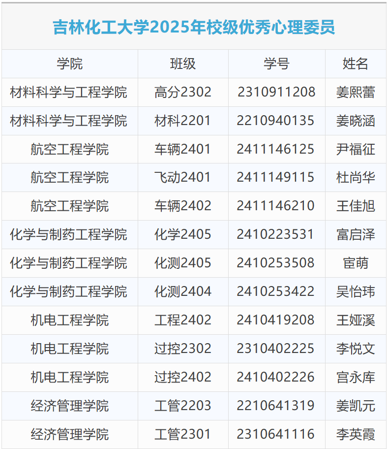 (公示期为2025年的10月16日至10月18日,如有需要反映有关情况及意见的,请于公示期间向我校大学生心理健康咨询中心反映,联系电话:0432-62185039。)