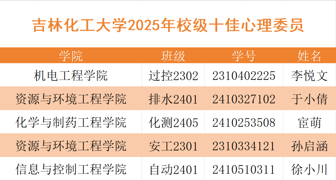 (此次公示期为2025年10月23日至10月25日,如需要反映有关情况及意见的,请于公示期间向我校大学生心理健康咨询中心反映,联系电话:0432-62185039。)