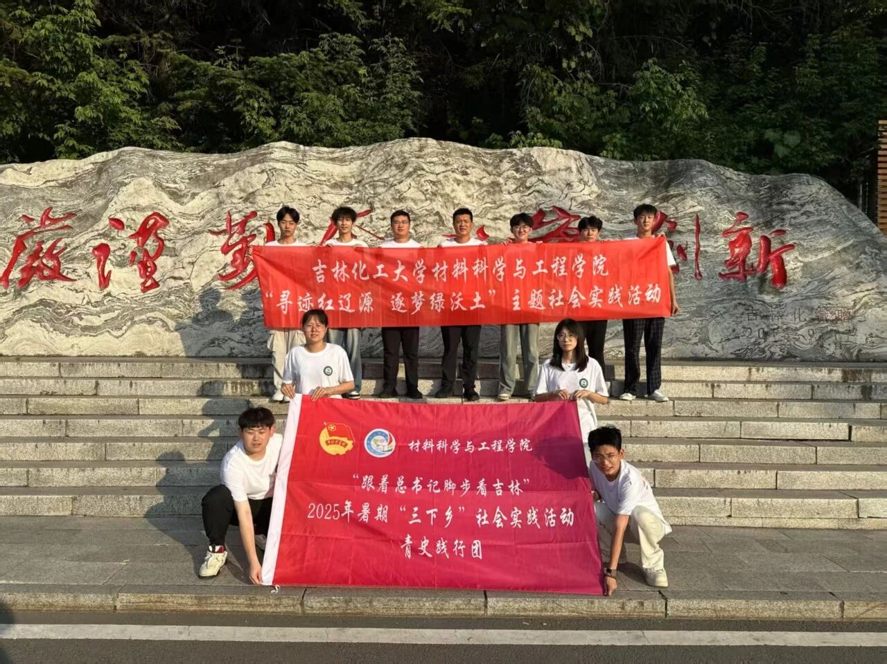 为深入学习党的二十大精神,认真学习贯彻习近平总书记在新时代推动东北全面振兴座谈会上的重要讲话精神,传承红色基因,培育时代新人,充分发挥红色文化思想政治教育功能,引导青年学子在实践中上好与现实相结合的“大思政课”。在团委书记张清文和辅导员韩东海带领下,材料科学与工程学院青史践行团于2025年7月9日前往吉林省辽源市开展暑期“三下乡”社会实践活动。