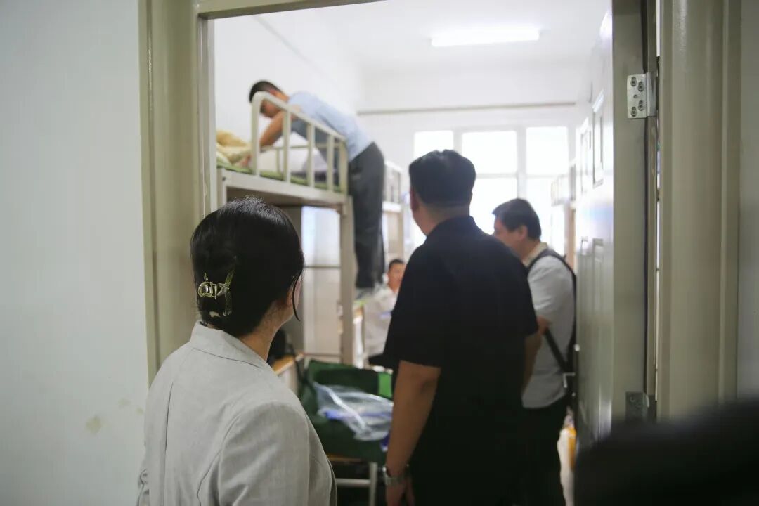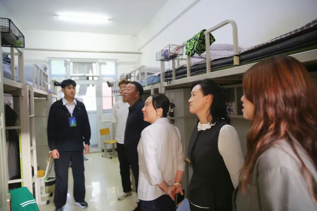 走访过程中,领导老师们对新生的到来表示热烈欢迎,并与新生们进行亲切交流,其中特别叮嘱新生要养成良好的生活习惯,增强安全防范意识,遵守学校规章制度,共同维护寝室的安全与稳定。