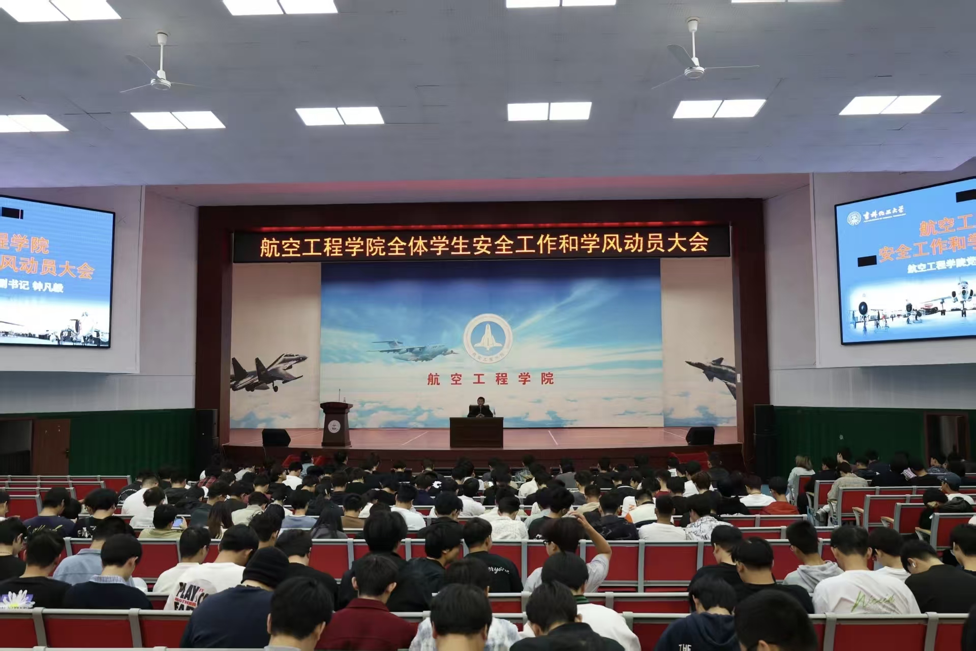 为切实提升各年级同学在学院生活与出行中的安全意识,帮助大家清晰明确学习目标、精准锚定未来发展方向,9月28日,航空工程学院在大学生活动中心隆重召开安全教育与学风动员大会。大会由航空工程学院党委副书记钟凡毅主持,各年级同学全程参与。