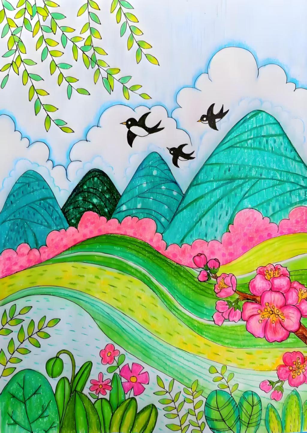 看着画面逐渐丰富起来,我深刻地感受到了大自然的神奇和伟大。春天不仅仅是一个季节,更是一种生命的象征,它让我们看到了希望和未来。