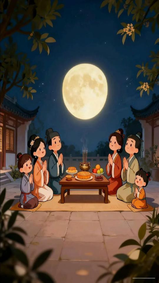 中秋的起源,最早可追溯至上古的“祭月节”。古人崇拜月亮,认为秋夕月亮最圆最亮,便在此时举行祭祀,祈求风调雨顺、家人安康。