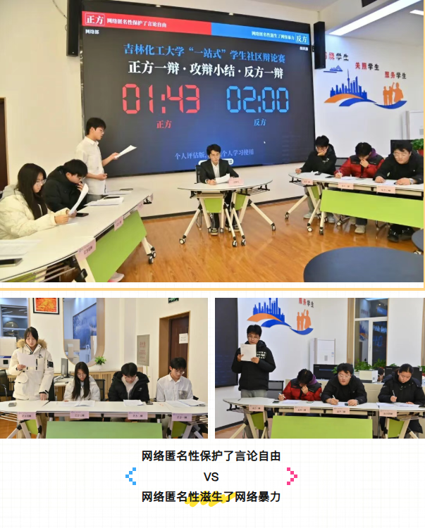 为深入推进“一站式”学生社区文化建设,培养学生思辨精神与表达能力,易班工作站于11月16日晚18:00组织开展了“一站式”学生社区文化节辩论赛活动。本次活动由“一站式”学生社区(易班工作站)主席丁致远主持,“一站式”学生社区(易班工作站)主席陈禹希、秘书长张雨晴担任评委。